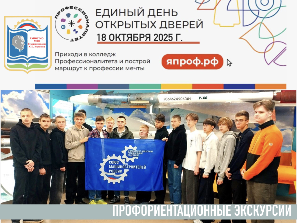 В преддверии единого дня открытых дверей Федерального проекта «Профессионалитет» национального проекта «Молодежь и дети» были организованы экскурсии на градообразующие предприятия городского округа Королев: ПАО «РКК «Энергия» имени С.П. Королева»; Корпорация «Тактическое ракетное вооружение»; и городского округа Фрязино: АО «НПП «Исток им. Шокина». .jpeg)