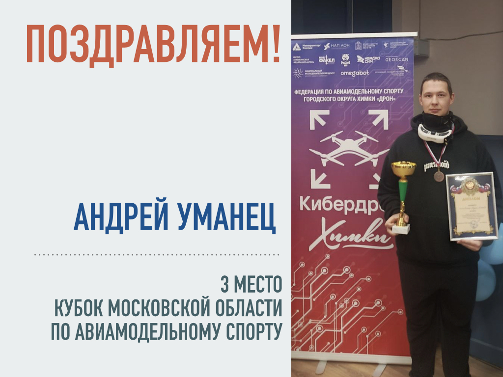Поздравляем! Студент ГАПОУ МО "МЦК-Техникум имени С.П. Королева" Андрей Уманец (211-БП) занял третье место с присвоением спортивного разряда по итогам соревнований по авиамодельному спорту на Кубок Московской области в классе моделей «гоночные мультироторные авиамодели» F-9U (75 класс)..jpeg)