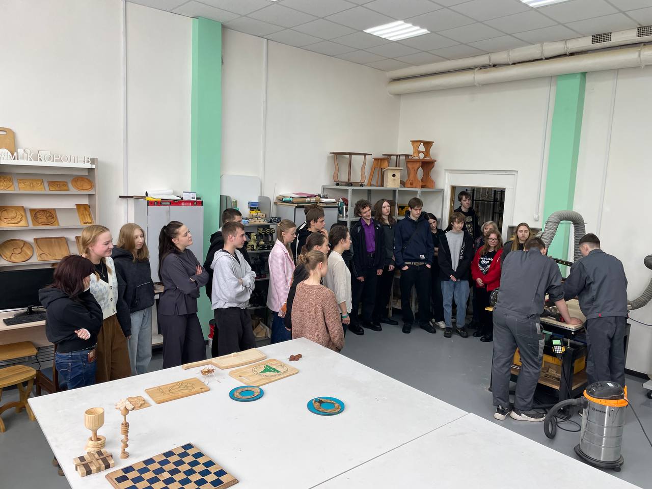 Студенты техникума посетили мастерские, где им были продемонстрированы работы, подготовленные с помощью столярного инструмента и на станках ЧПУ.