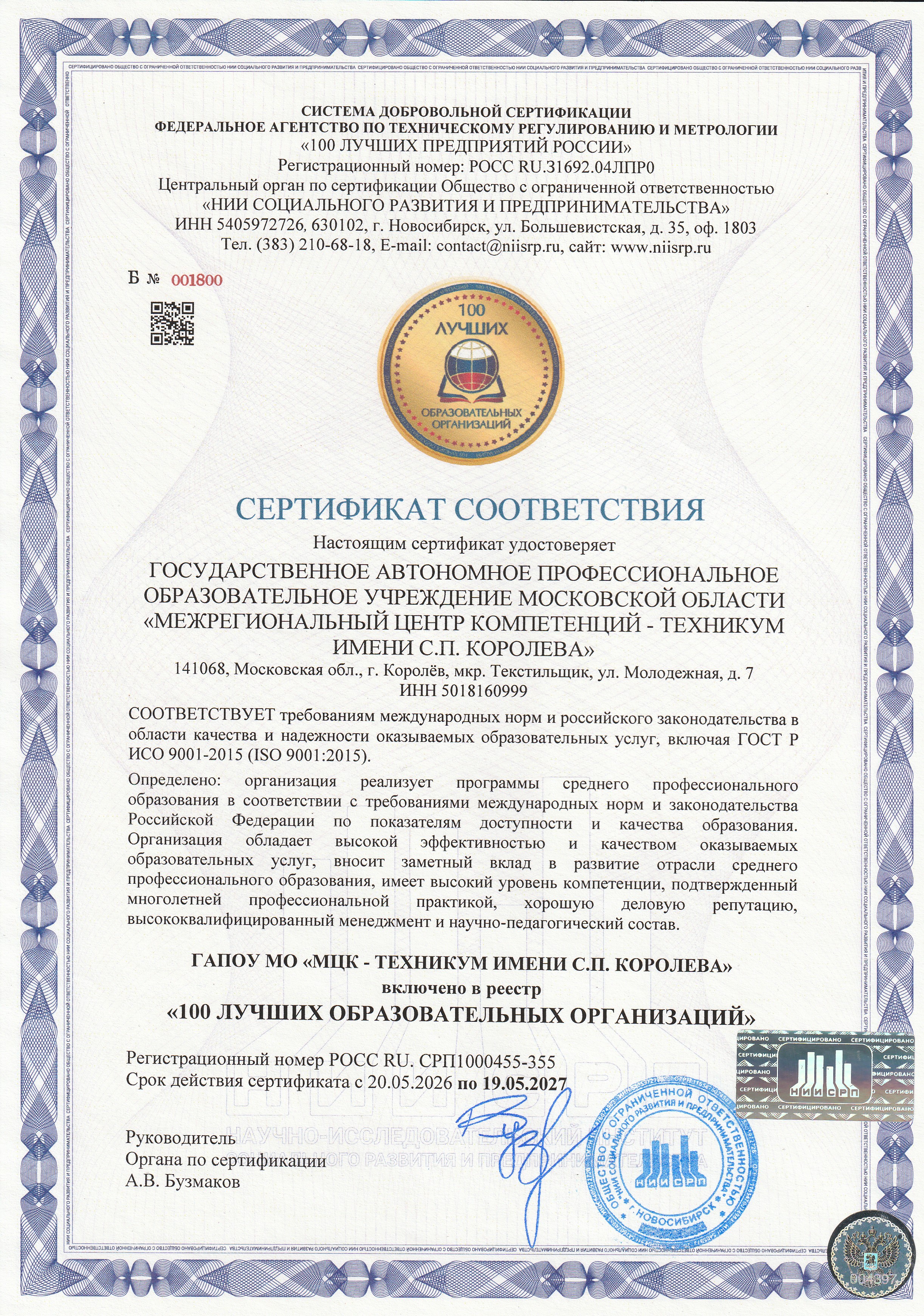 Структурное подразделение №2 по адресу: Московская область, город Королев, Болшевское шоссе, дом 2;