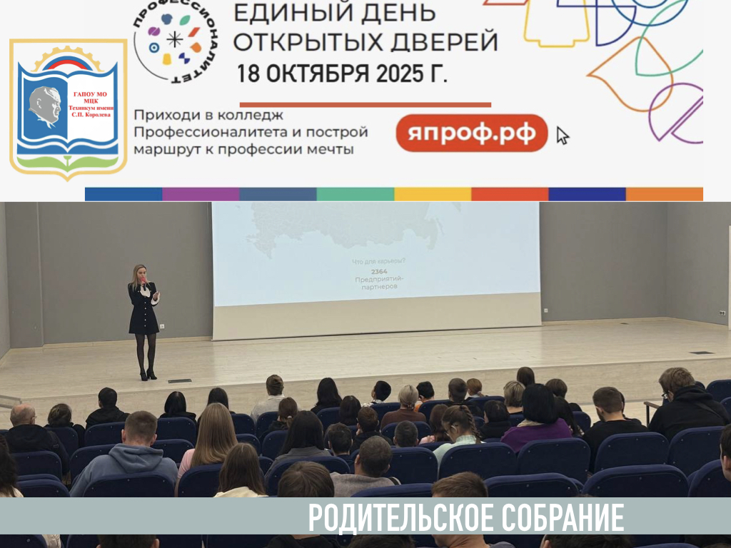 18 октября 2025 года педагоги и волонтеры встретили абитуриентов и их родителей на Дне открытых дверей в ГАПОУ МО «МЦК-Техникум имени С.П. Королева». Единый день открытых дверей ежегодно проходит как масштабное мероприятие по популяризации Федерального проекта «Профессионалитет» национального проекта «Молодежь и дети».