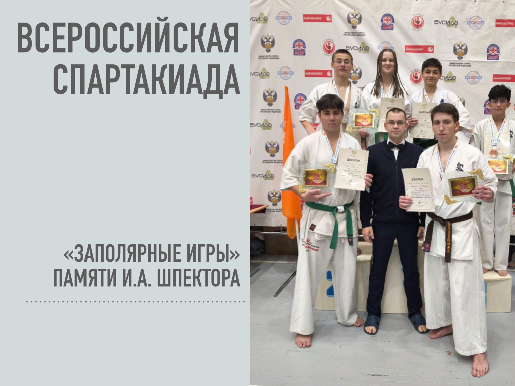 Крамаренко Вадим награжден медалью и грамотой Министерства спорта России за 2 место в соревнованиях по киокусинкай каратэ среди юниоров в зачете XXV Всероссийской Спартакиады "Заполярные игры" памяти И.А. Шпектора.